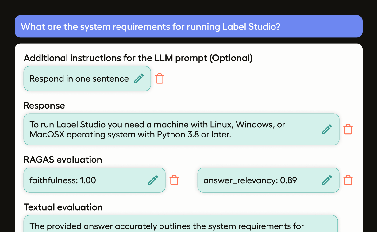 • An LLM-generated evaluation of the response.