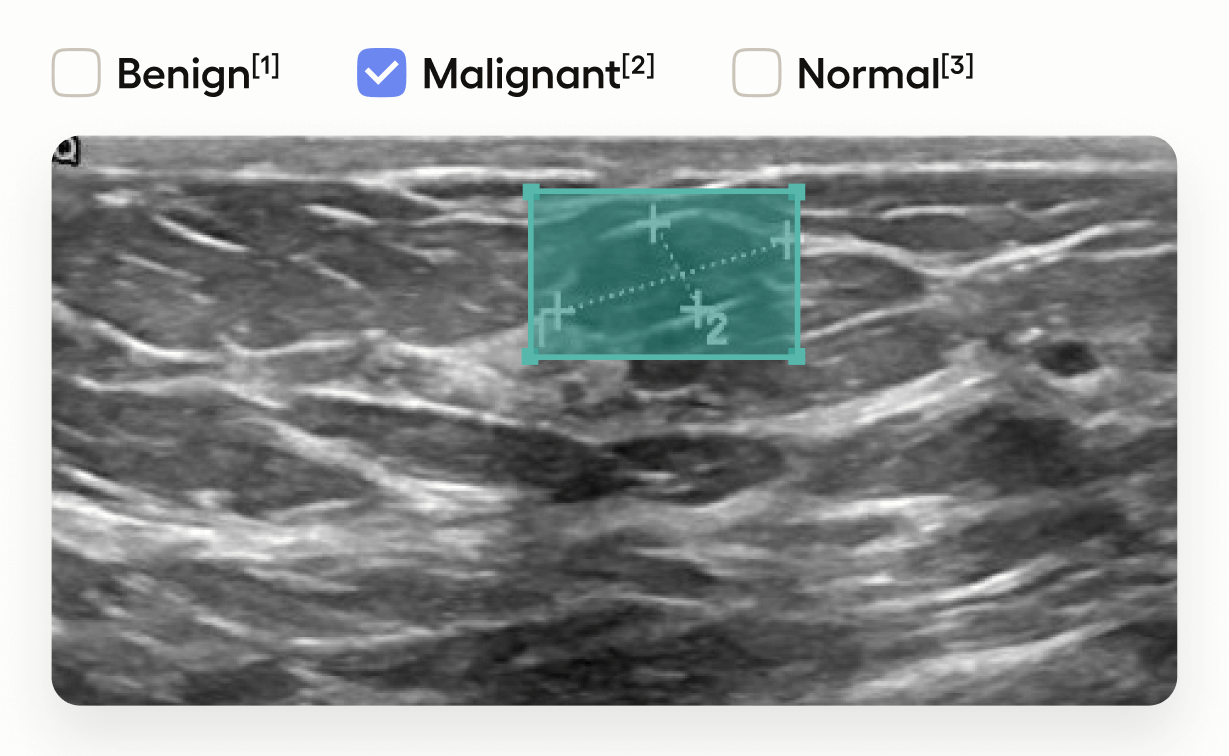 • Annotators can classify the image as “Benign”, “Malignant”, or “Normal”.